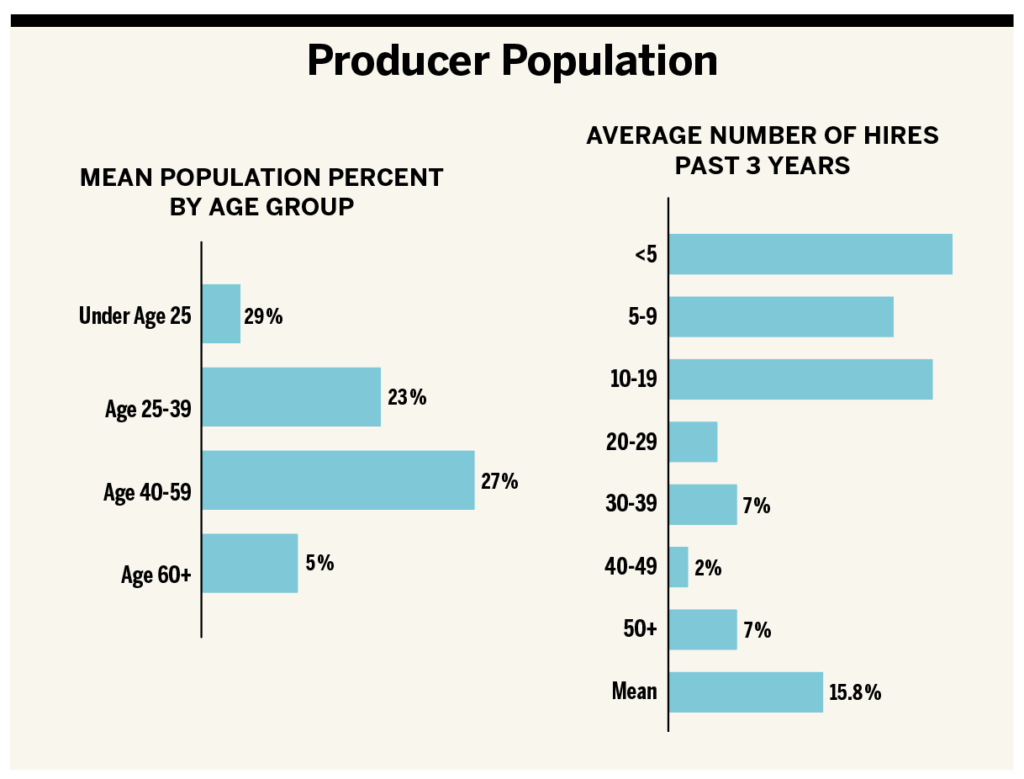 Just under half of the overall producer population falls within the 40-59 age category, so succession planning and mentorship will be critical to sustaining long-term growth. The majority (79%) of respondents state the average time to producer validation is three to four years, consistent with historical industry averages.