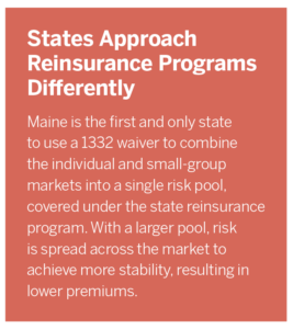 Section 1332 of the Affordable Care Act (ACA) permits a state to apply for a State Innovation Waiver to pursue strategies that provide residents with access to high-quality, affordable health insurance. There are 17 states that have applied for and received Section 1332 waiver funding to construct a reinsurance program. The waivers gained traction after a federal reinsurance program established by the ACA ended in 2016 and carriers started leaving the individual market.