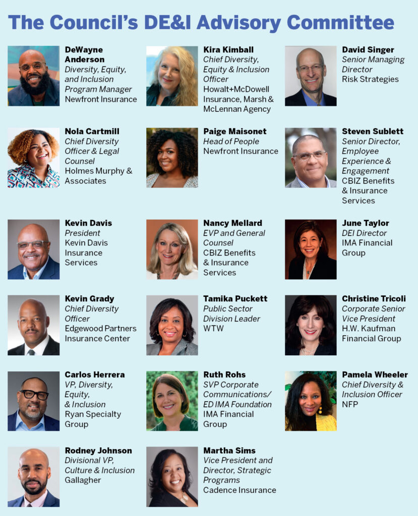 Some of our committee members are motivated by the impact DE&I can have on their organizations and on the industry. Leaders should make an ongoing commitment to ensure diversity, equity and inclusion in both their workforce and the customer demographics they serve. Demonstrating such commitment could help close the trust gap that has often undermined the industry’s credibility with key stakeholders. “When we are intentional about being more diverse, equitable and inclusive, we create better outcomes for all stakeholders,” says Pamela Wheeler, chief diversity and inclusion officer at NFP.