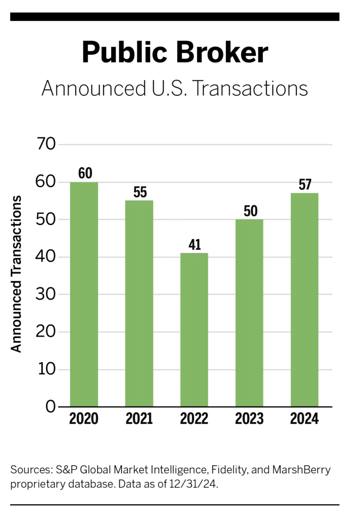 - Brown & Brown completed seven U.S. transactions, matching its count from 2023;