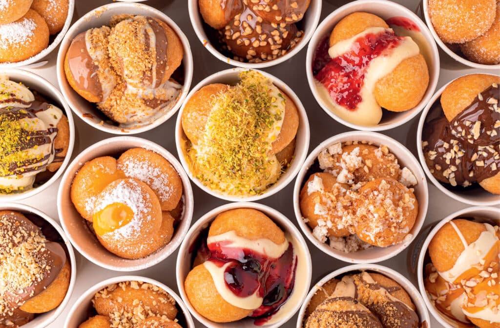 Loukoumades > A simple and ancient dessert, it’s a bit of fried dough smothered in honey and sometimes topped with cinnamon, nuts, or just more sugar.