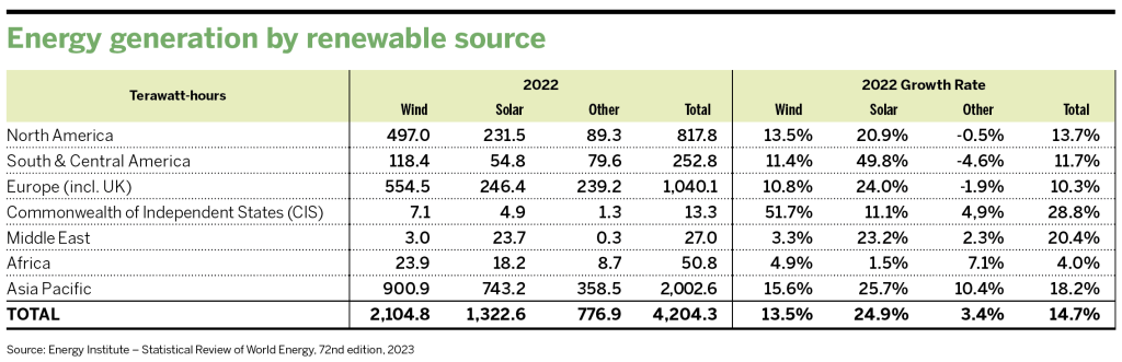 The market for solar renewable energy continued its strong growth in 2022, with both concentrated solar thermal and photovoltaic (PV) projects playing a key part.