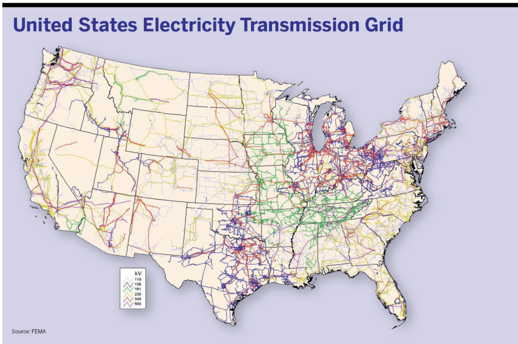 Providing electricity to customers encompasses a complex network of generation, transmission, and distribution. Three regional grids covering the eastern United States, western United States, and Texas are powered almost entirely by natural gas, coal, nuclear, and renewables from thousands of commercial generators carried by hundreds of thousands of miles of transmission lines and more than five million miles of local distribution lines to customers.